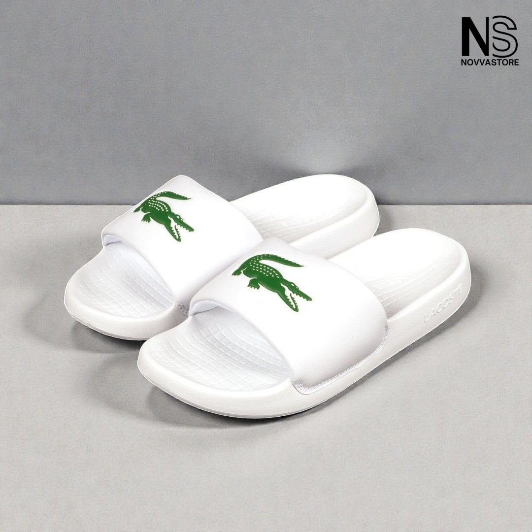 Un par de Ojotas Lacoste — diseño clásico, materiales superiores y la comodidad distintiva de la marca.